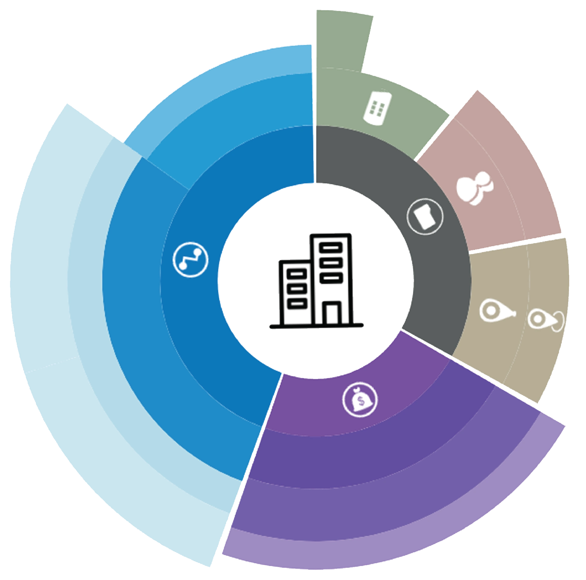 Your company chart is a great depiction of your company’s identity based on the information you provide to build the company profile. It forms a visual and parameterized definition for your main business models, employee size and locations, along with fields of activities which is based on a very detailed database of all potential business activities.The profile chart provides a great description of your company at a glance.