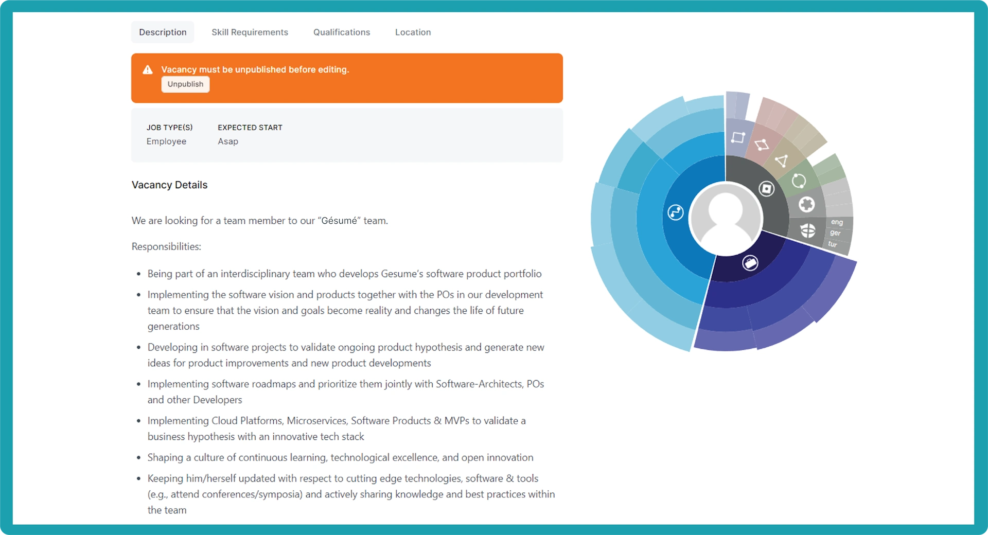 Vacancies and Candidate matches get spotted and scored by Gésumé’s advanced algorithms.